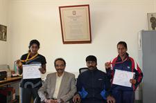 Kavya S of B.Com-I year particpated in Dussehra Sports event at Sri Kanteerva stadium and won Gold medal each in 400 m race ,200m race. She also bagged a Bronze medal in 4X400 mt relay race
